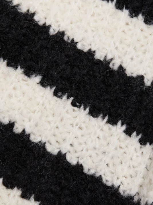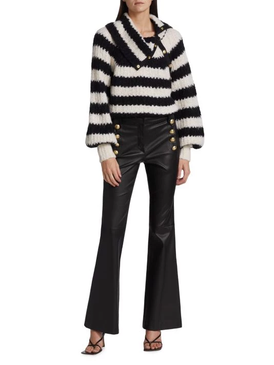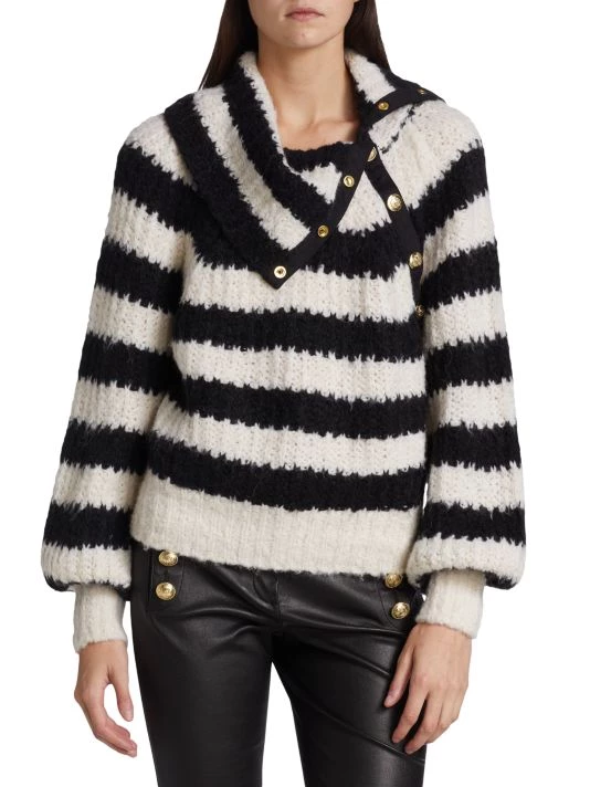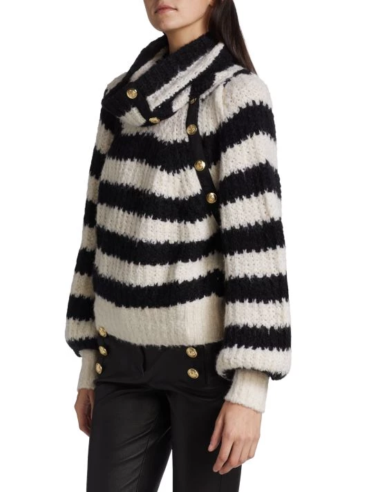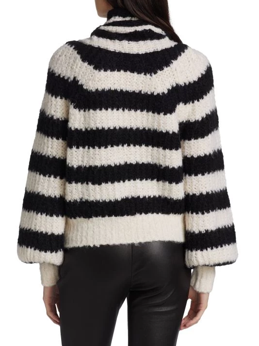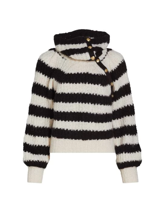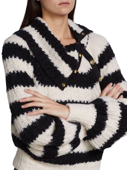 Derek Lam 10 Crosby’s Astra stripe knit sweater features a turtleneck with asymmetric crested goldtone snaps.
