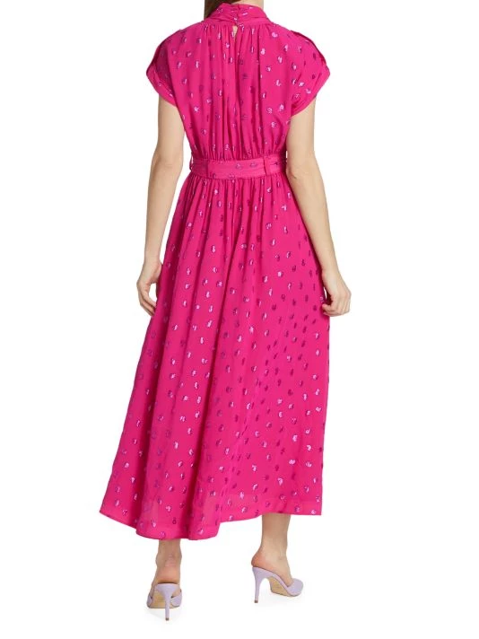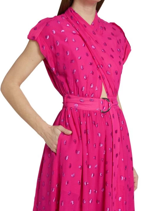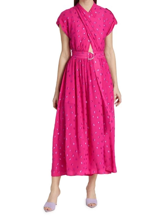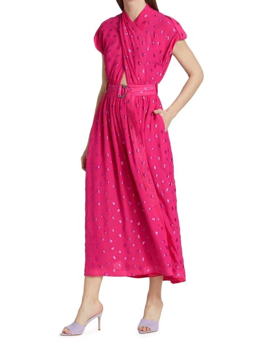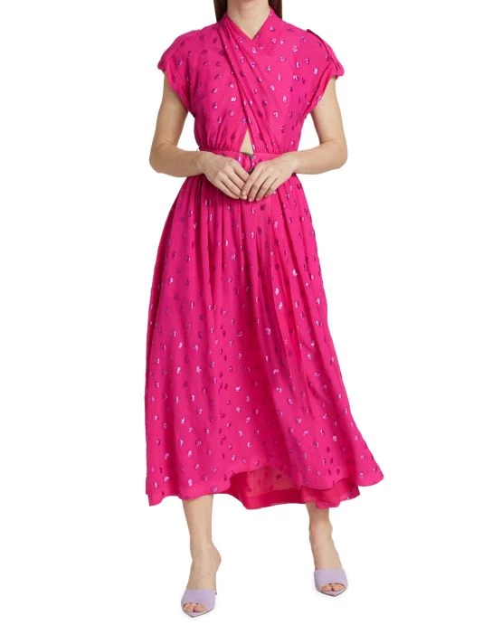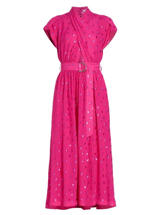 Derek Lam 10 Crosby’s belted Celeste midi-dress is elevated by a wrap bodice and glitter-embellished patterning.