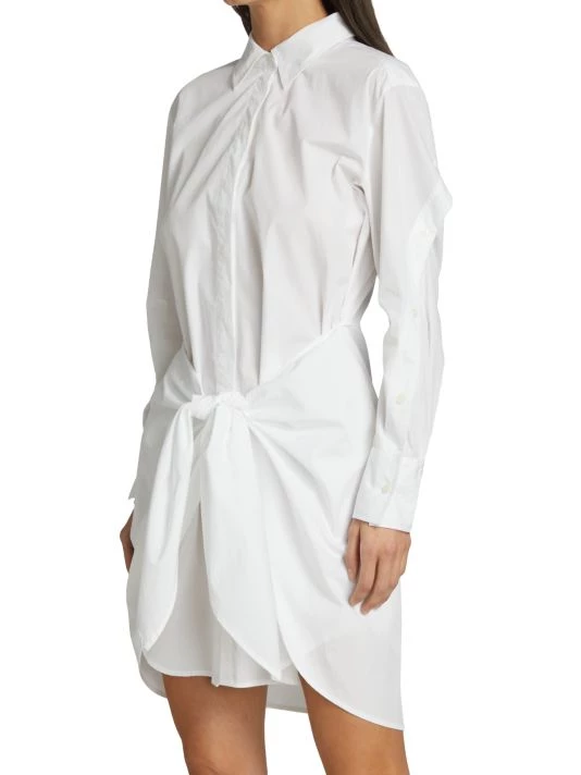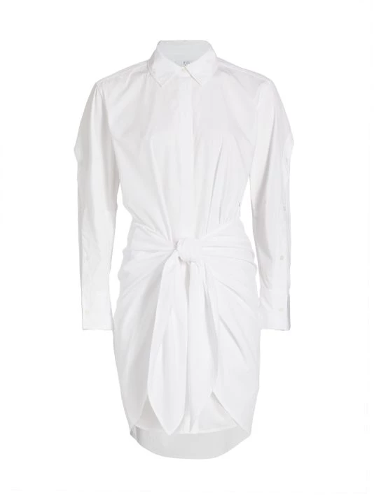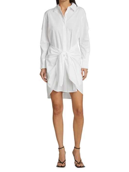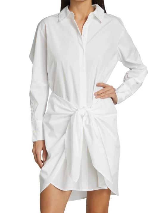 The Charlotte cotton shirtdress from Derek Lam 10 Crosby features a mini-length, draped skirt with a tie-front detail. This crisp style is finished with button-seamed long sleeves.