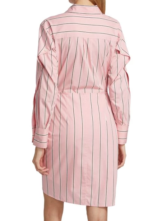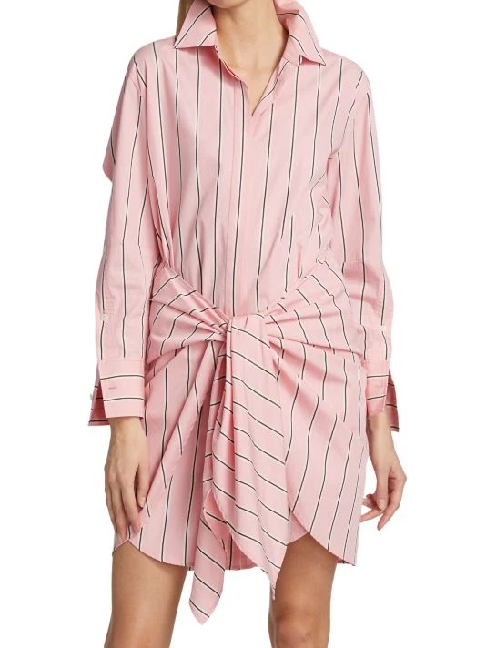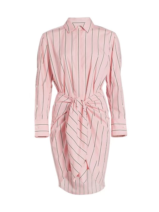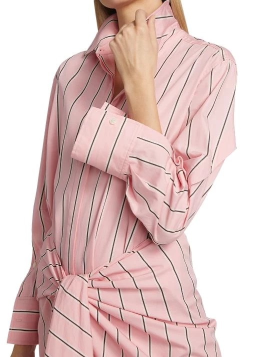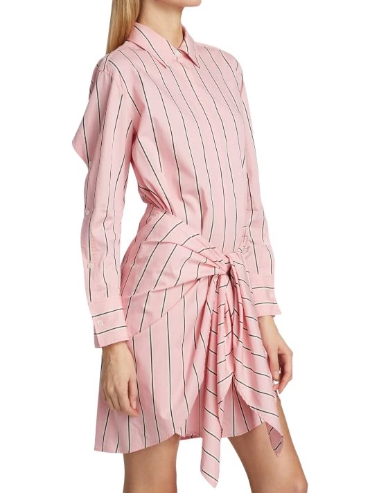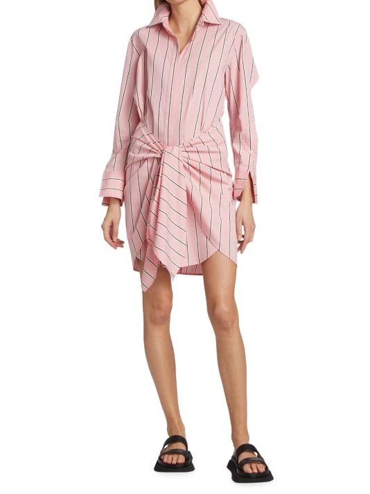 Cut from striped cotton poplin, a self-tie waist flatters the silhouette of this mini-length shirtdress.