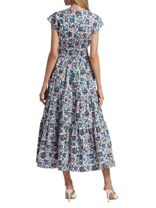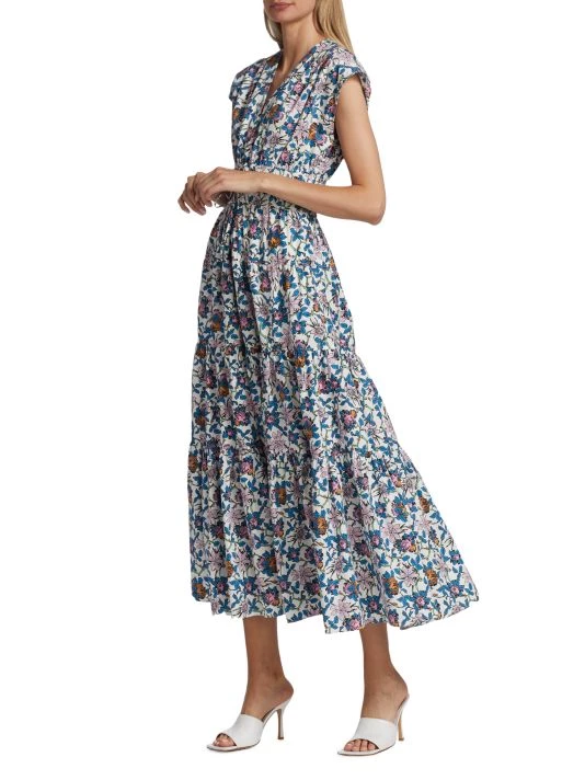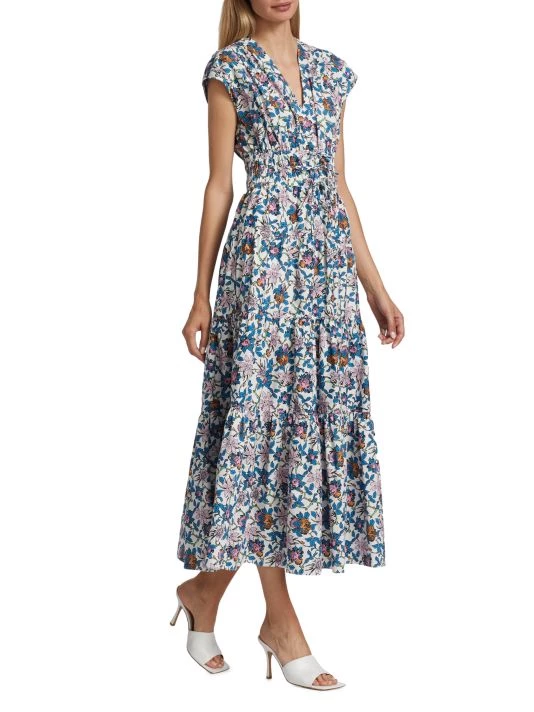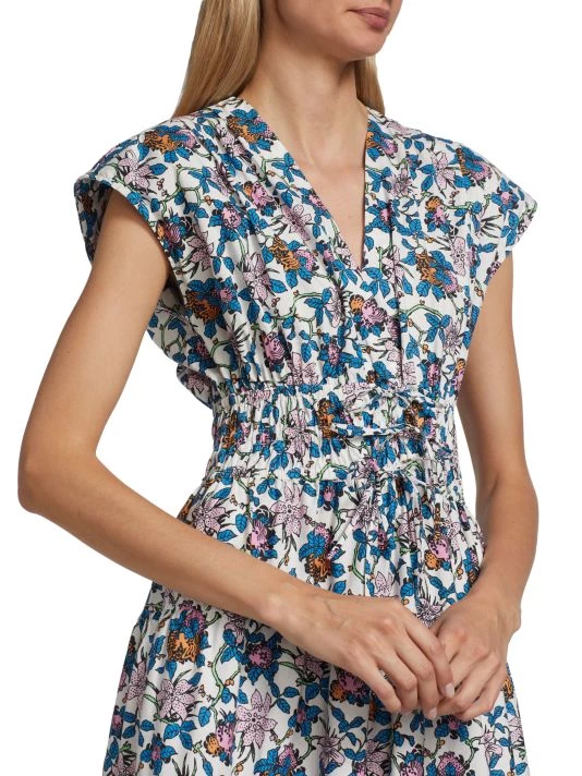 Crafted of floral printed cotton, the Fatima dress by Derek Lam 10 Crosby is designed in an A-line silhouette with cap sleeves.