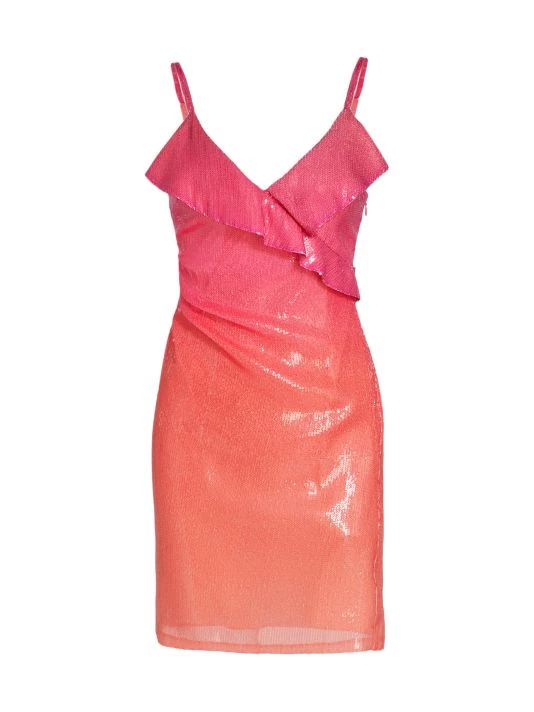 Based in New York, Derek Lam 10 Crosby creates stunning ready-to-wear with a polished edge. The Gigi minidress is made of metallic fabric with a gradient design and front ruffled detail.