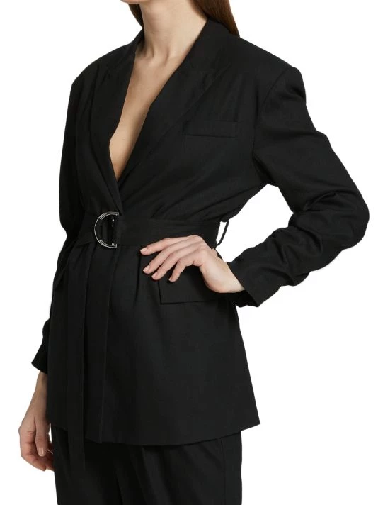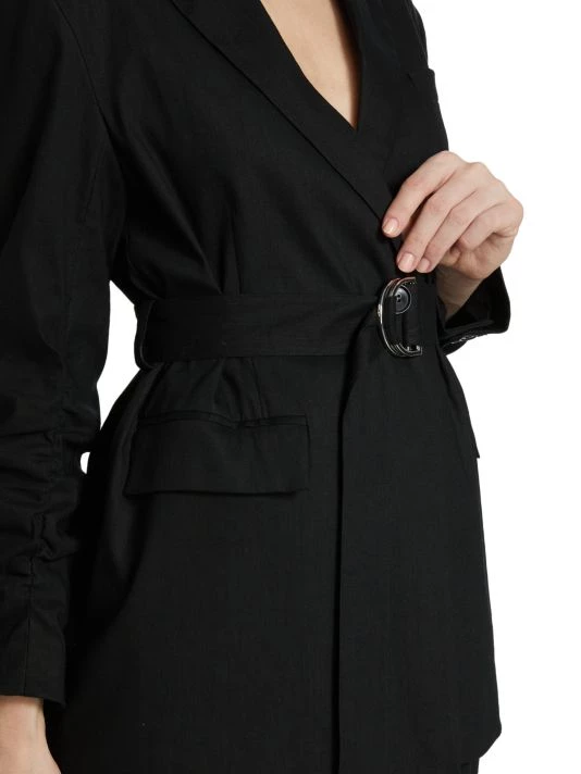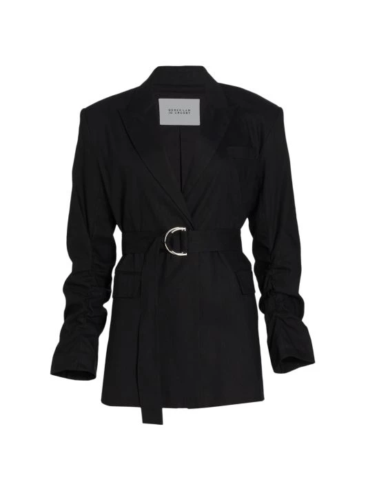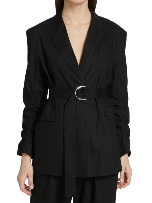 Crafted of a luxe linen blend, Derek Lam 10 Crosby’s Harrison blazer is elevated by gathered sleeves and a tonal buckle belt.