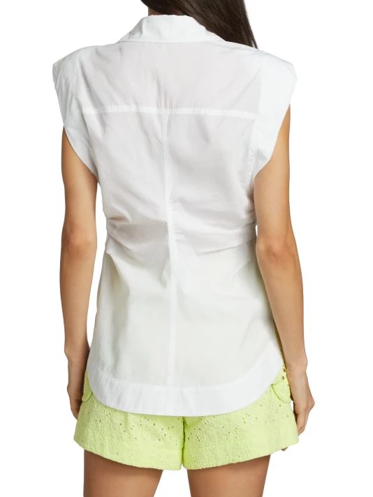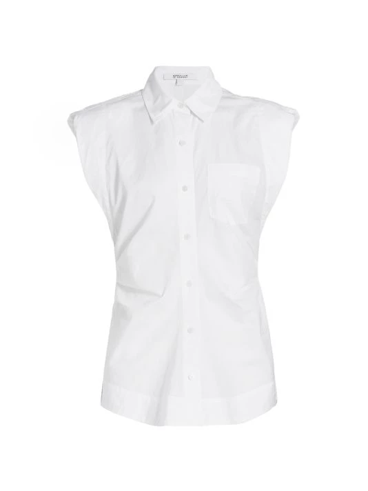 Derek Lam 10 Crosby designs sharp everyday styles with a tailored look. Crafted of cotton chambray, this button-front shirt is detailed with padded shoulders.
