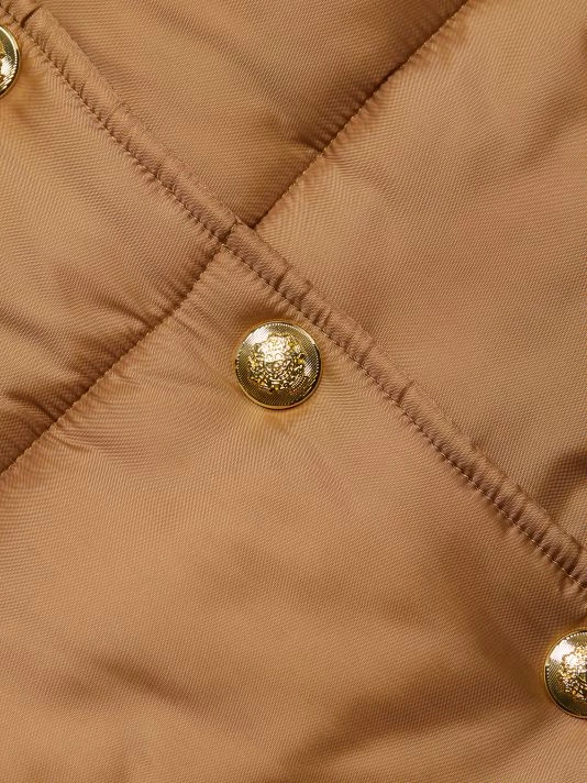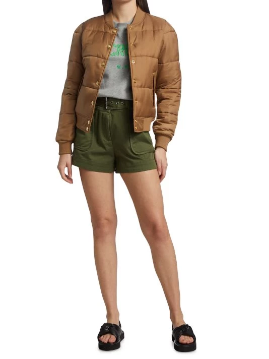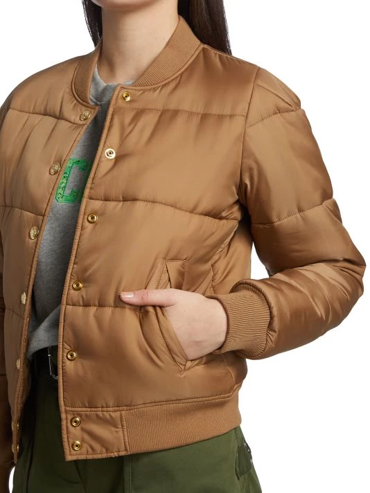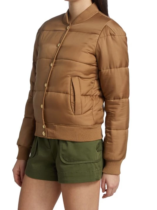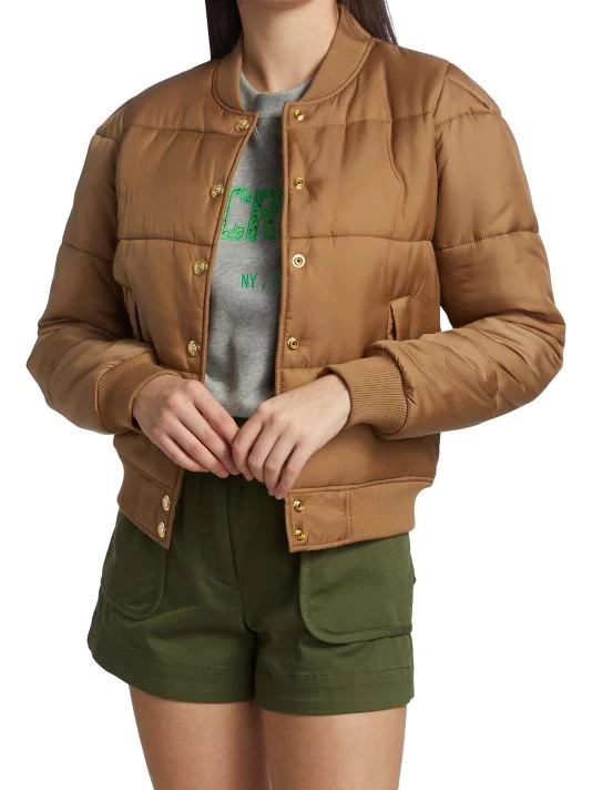 Inspired by the aesthetic of downtown Manhattan, Derek Lam designs feminine, relaxed pieces for all occasions. The Lola puffer jacket is made of quilted nylon with a ribbed collar and gold crest buttons.