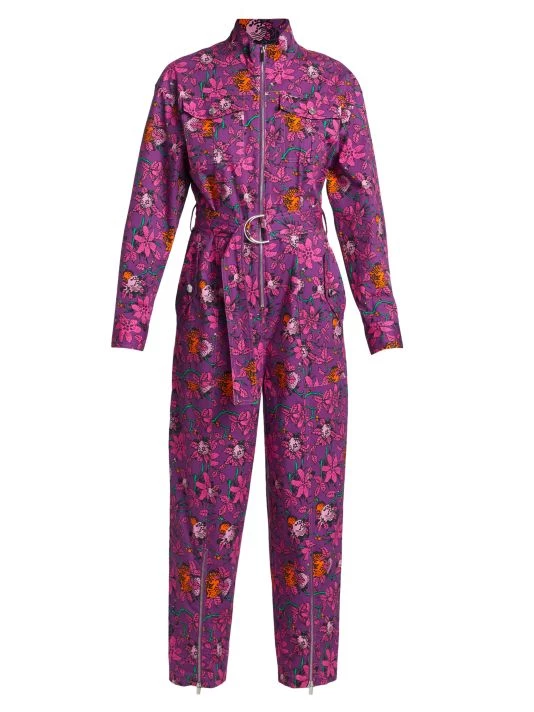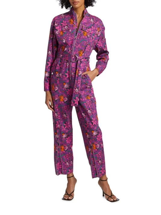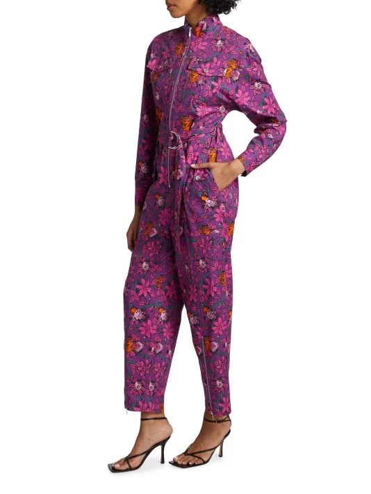 The Preston jumpsuit from Derek Lam 10 Crosby features a stand collar with a zip-front closure and classic utility pockets. Zip hems and a matching D-ring ring belt complete this floral-print style.