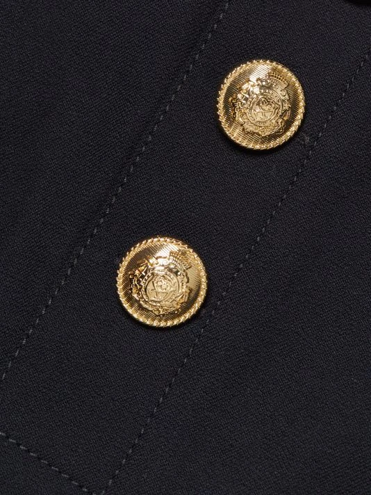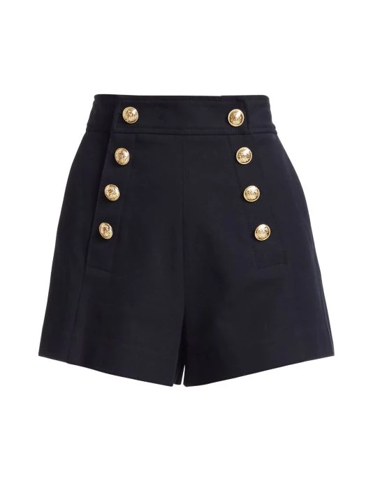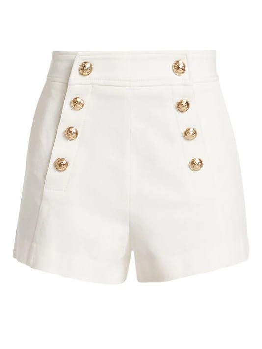 Stretch cotton high-rise chino shorts accented with goldtone nautical-inspired buttons.