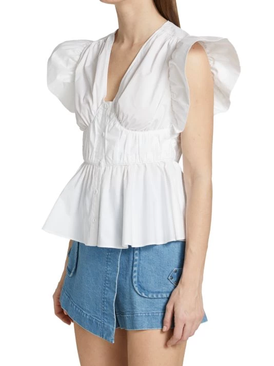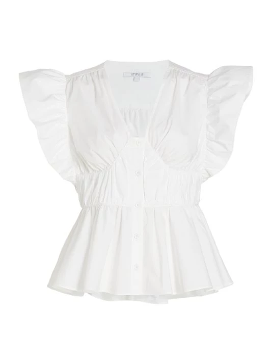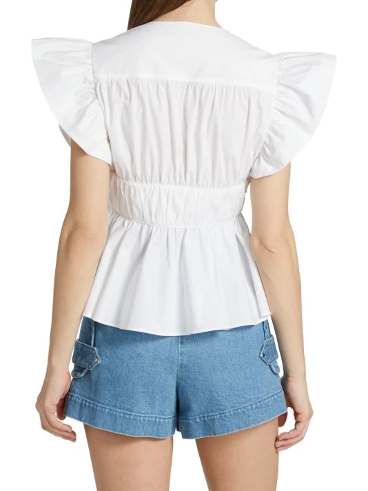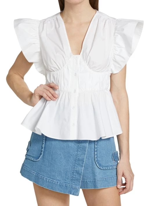 Defined by flutter sleeves, Derek Lam 10 Crosby’s Roselyn top offers a defined waist and playful peplum hem.