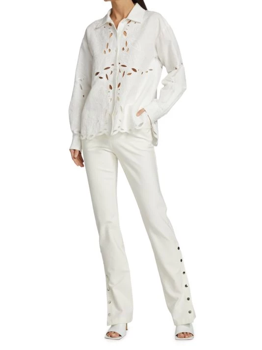 Side snaps lend shape to these stretch cotton pants, cut with a high waist and mini flare.