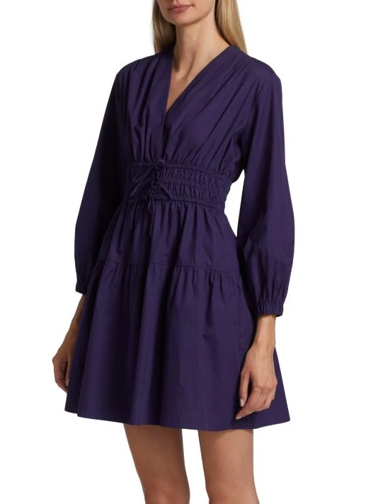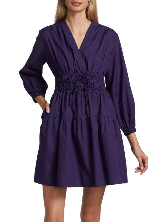 Derek Lam 10 Crosby’s Tora minidress offers a tiered construction and smocked waist.
