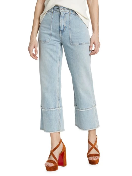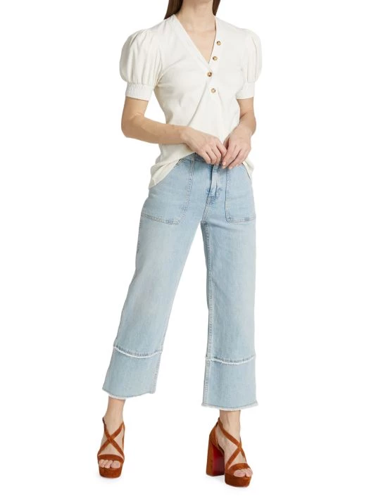 Cut in an ankle-crop silhouette, Derek Lam 10 Crosby’s wide-leg Zuri jeans are elevated by a tonal buckle belt and raw hem.