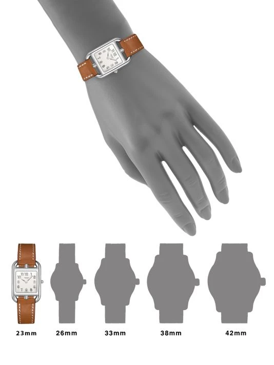 - Leather strap; 14mm x 12mm (0.55″ x 0.47″)
