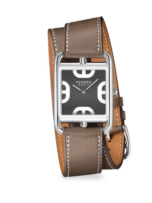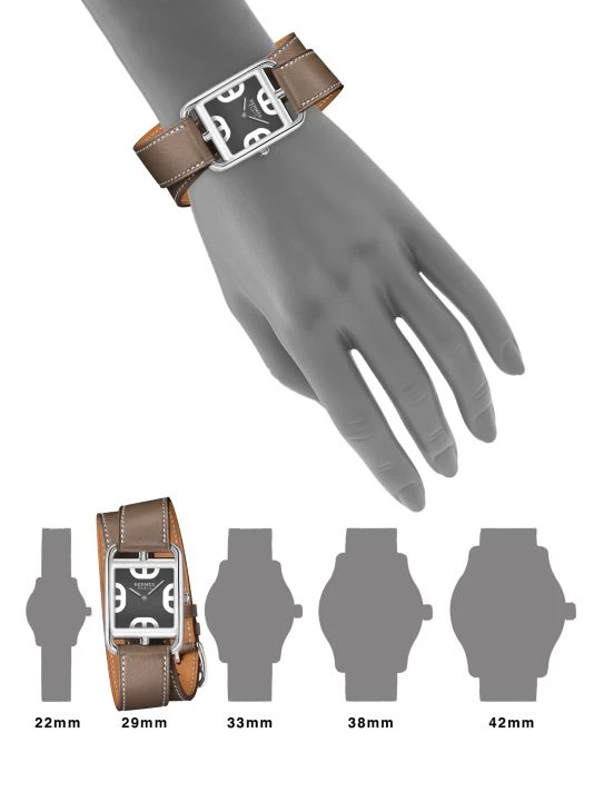 - Interchangeable double wrap-around leather strap, 19mm x 17mm (0.75″ x 0.66″)