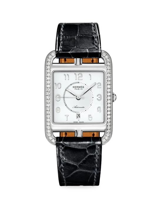 From the Cape Cod Collection. Iconic stainless steel square case flaunts pavé diamonds and a dropped setting with signature brand accents. Finished with a lux alligator strap.