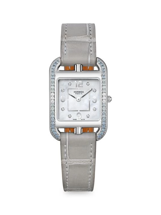 From the Cape Cod Collection. Securing with a grey alligator leather strap, this stunning watch features a square stainless steel case encrusted with shimmering grey sapphires and white diamonds.