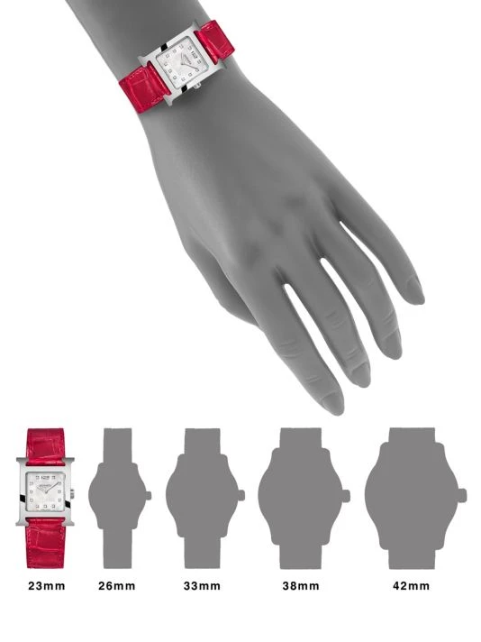 - Interchangeable smooth red alligator strap, 20mm x 17mm