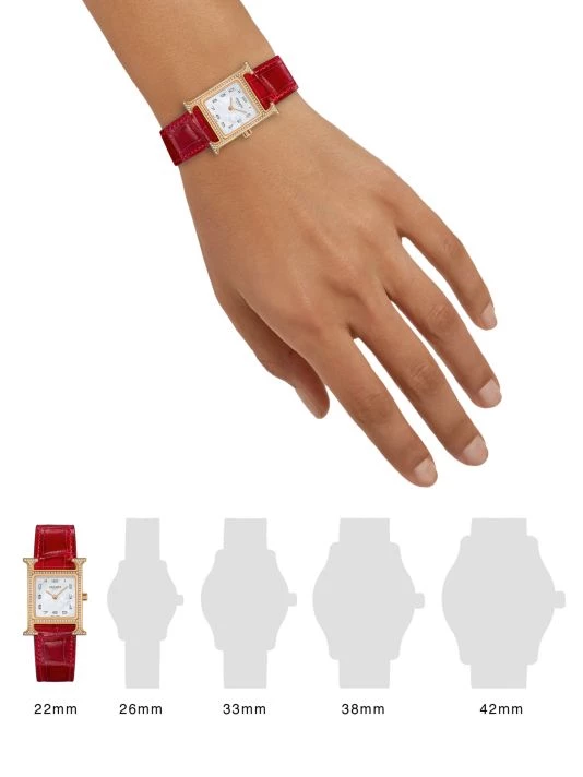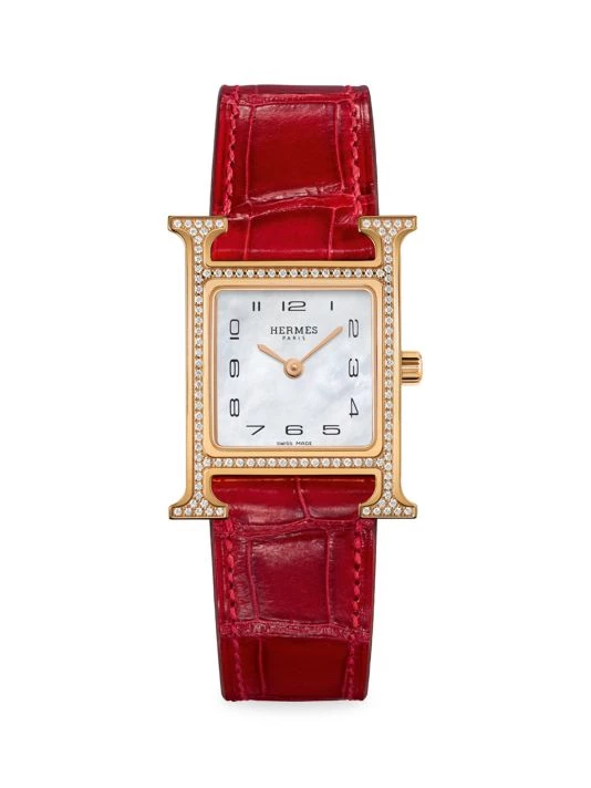 From the Heure H Collection. Signature H-shaped rose gold case highlighted with dazzling diamonds on an opulent polished alligator strap.