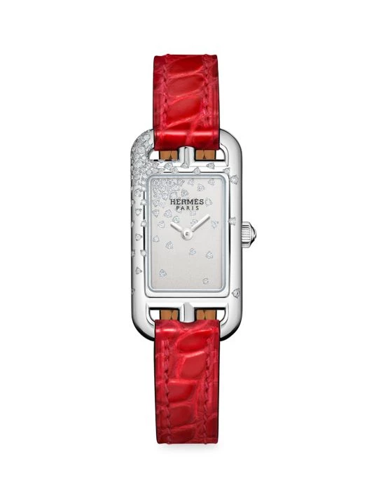 From the Nantucket Collection. Luxurious and delicate, this red alligator strap watch flaunts shimmering diamond details.