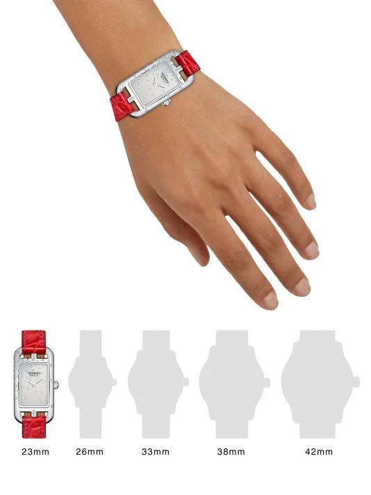 - Stainless steel rectangular case, 17mm x 23mm (0.6” x 0.9′)