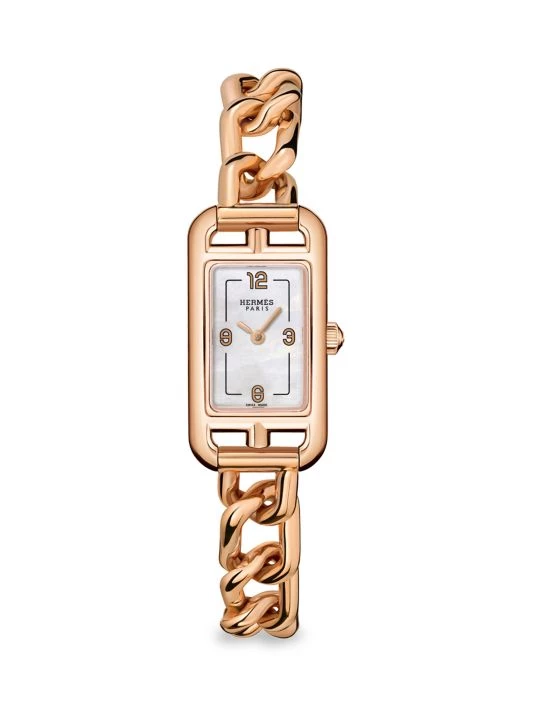 From the Nantucket Collection. An elegant rectangular watch with polished link bracelet in an 18K rose gold finish.