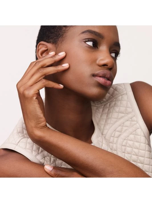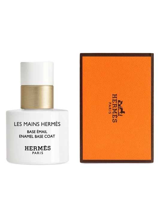 Les Mains Hermès is the third chapter of Hermès Beauty. A collection combining care with color, echoing Hermès’ workmanship.The enamel base coat is the first step of a hand care ritual. Its smooth texture, in translucent white, unifies and protects the nails and extends the longevity of the polish. Perfected by this invisible satin softness, the nails are prepared for the application of color. A formula containing 69% natural ingredients, it is enriched with the resin tears of Pistacia lentiscus L. An object designed by Pierre Hardy that is both poetic and functional, it is protected from the light inside its white lacquered bottle and slipped into its little orange box. 0.5 oz. Made in France.